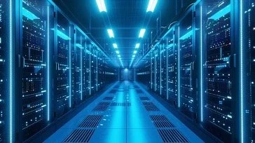 The room – 2x the size of a football pitch, is buzzing with masonry drills. Far into the distance in all directions, servers in long rows to the four-metre ceiling are being installed. Blue strip lights line the corridors leading to the Cube. It looks like a server facility you’d expect to find in the basement of an AI data centre.