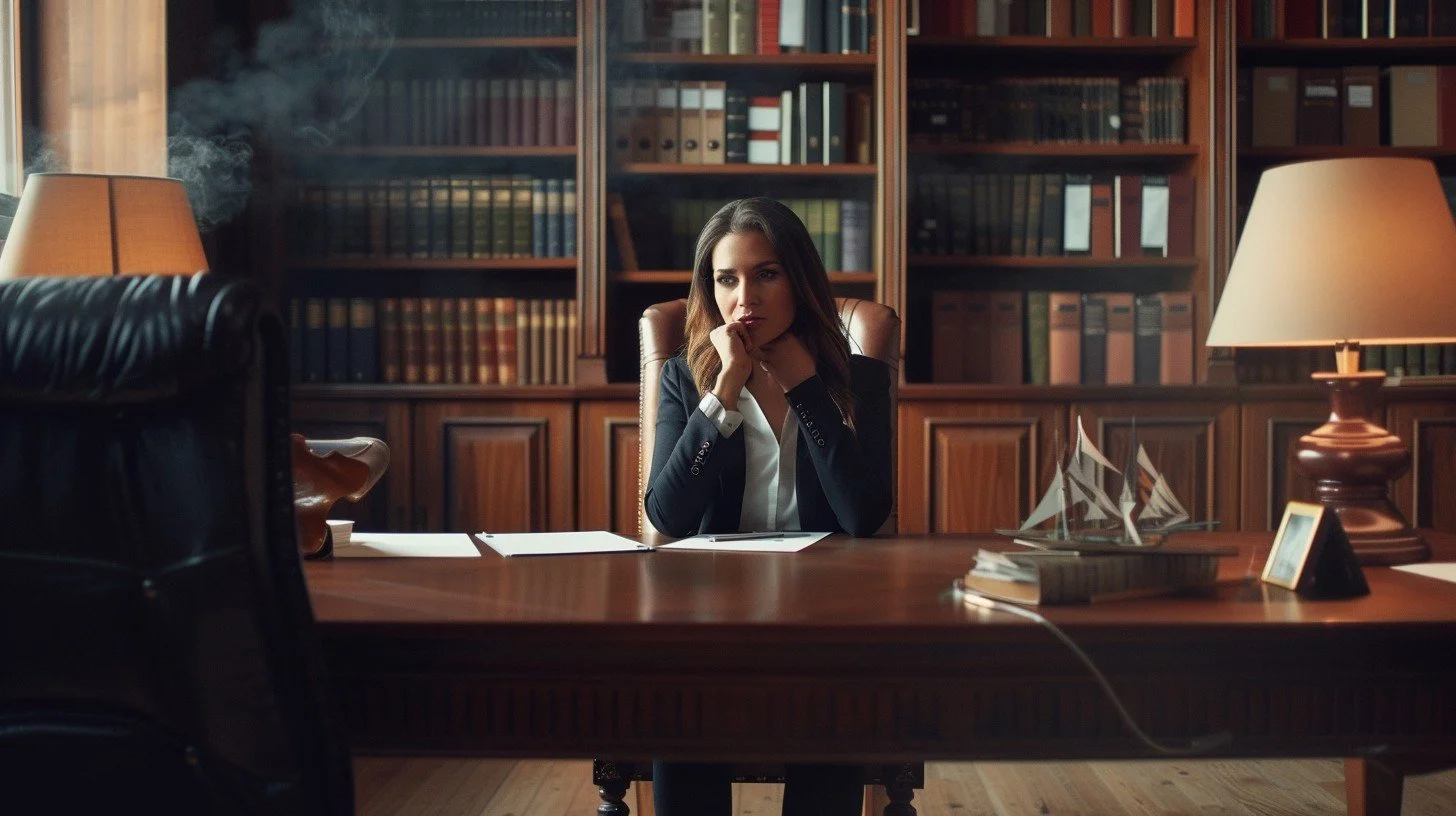 She finishes with the report, drops into a chair and looks at you from across her desk.