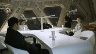 Qui is studying schematics from a tablet. Oleg and Sahila look asleep.