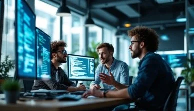 Once at their Southbank warehouse, the metal door slides open, and the van is soon inside. After climbing out, you make a quick scan of their base, which is a converted machine shop with drop lights from a high ceiling, windows fronting an office park, lots of modern tech and three guys at desks with more computers than you have at your lab.