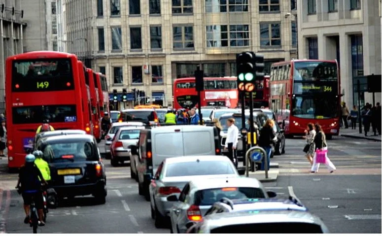 The girl up front points the driver to turn onto Holborn then looks up through the windshield at a police helicopter hovering above the street. The guy spins the wheel at the corner. Three police cars with sirens and lights fly by in the opposite direction – back towards Leicester.